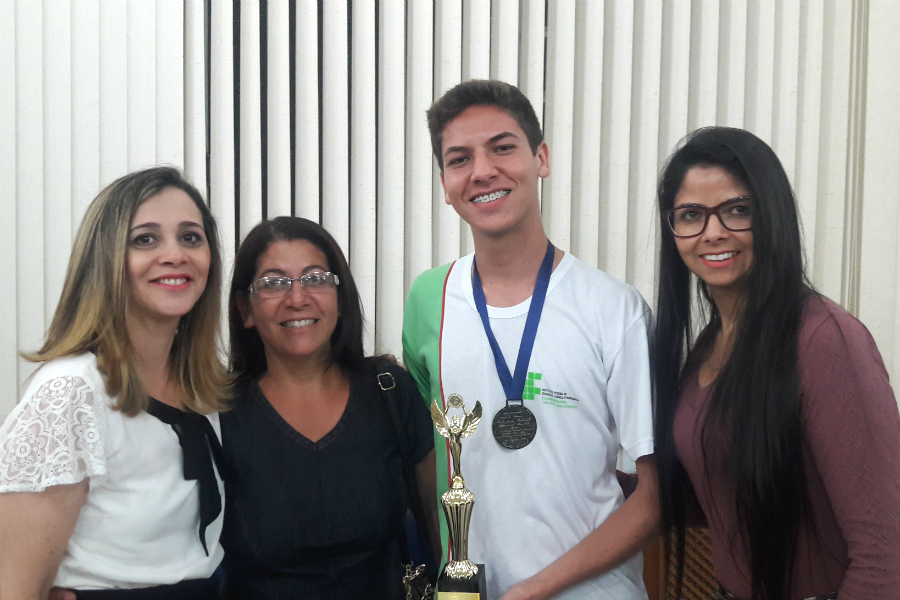 A professora Otília Moura, a mãe Maria das Graças Anacleto e a tia Milka Pereira acompanharam a premiação.