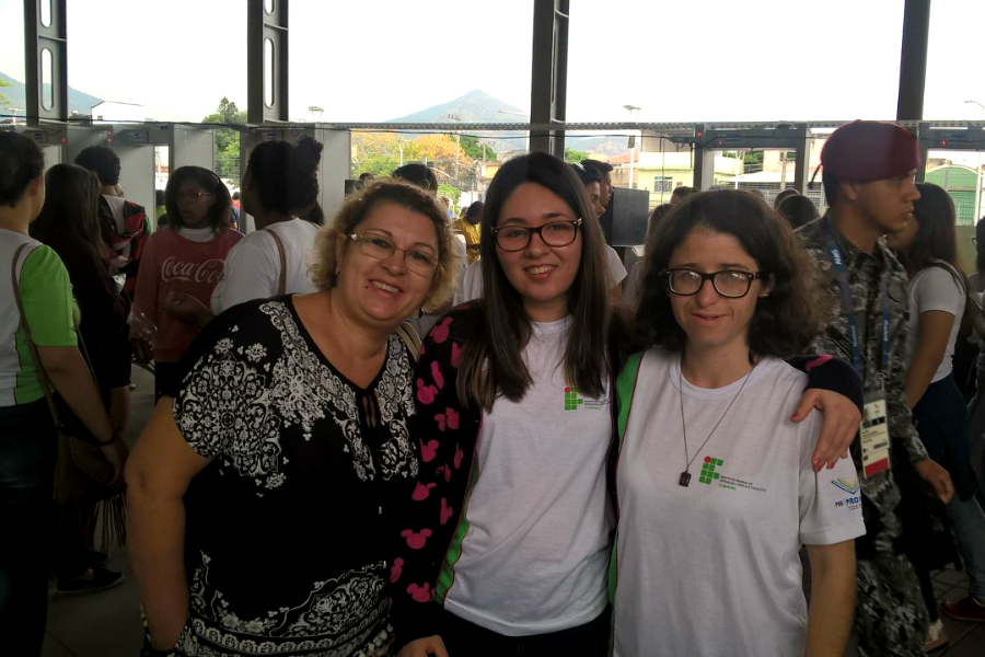 Luana e Roberta, alunas do Napnee, com a servidora Erdelina
