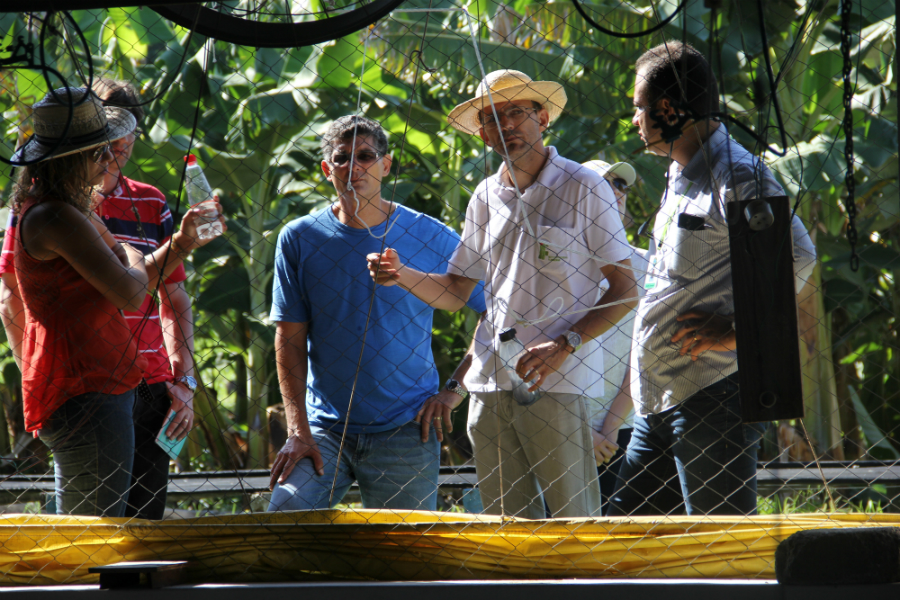 O professor Will Pereira conduziu o grupo pelos setores de produção animal.