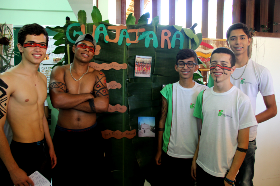 Divididos em grupos, alunos falaram sobre vários aspectos da cultura indígena, como culinária, folclore, danças, entre outros.