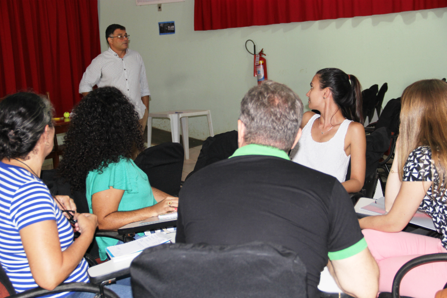 O professor André Uebe orientou os grupos em relação às regras da atividade de construção da torre de canudos.