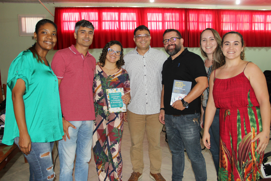Equipe pedagógica e os palestrantes, professores André Uebe e Fabrício Barros.