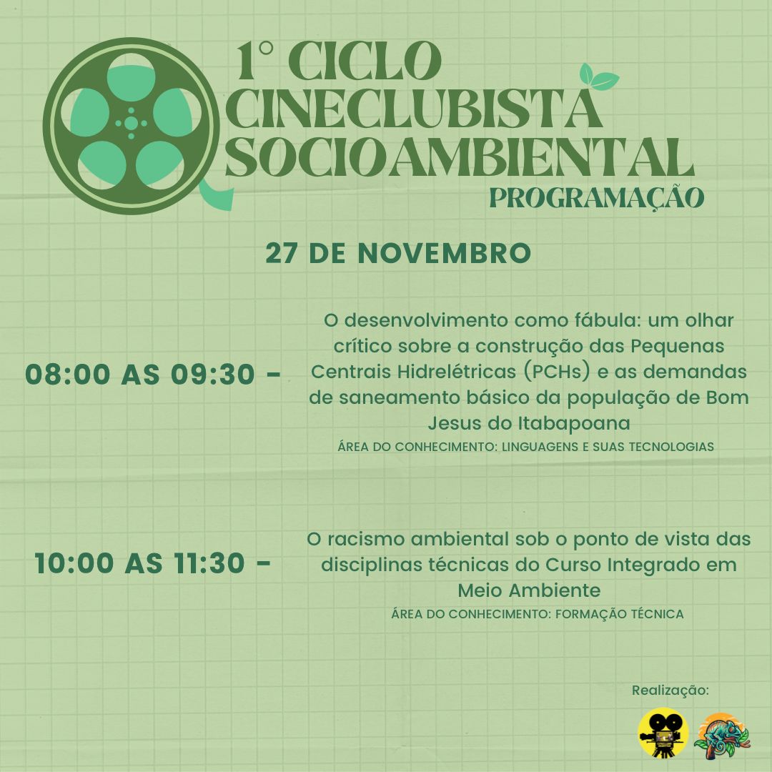 Programação I Ciclo Cineclubista Socioambiental - 27 de Novembro