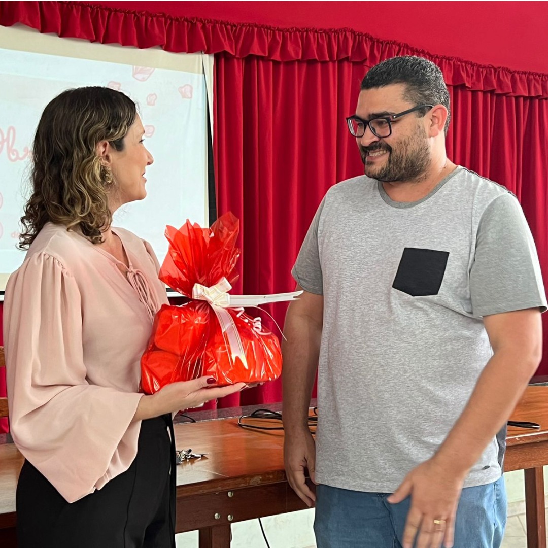 O diretor-geral, Leandro Costa, compareceu ao evento e entregou uma lembrança do campus à Draª Paula.