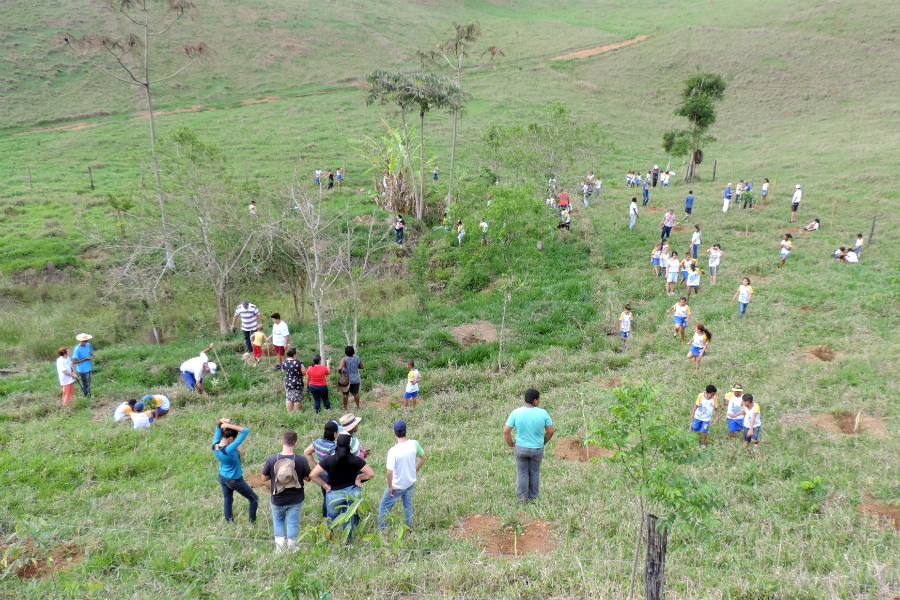 Estudantes do ensino fundamental participam do plantio e aprendem sobre a importância da preservação.
