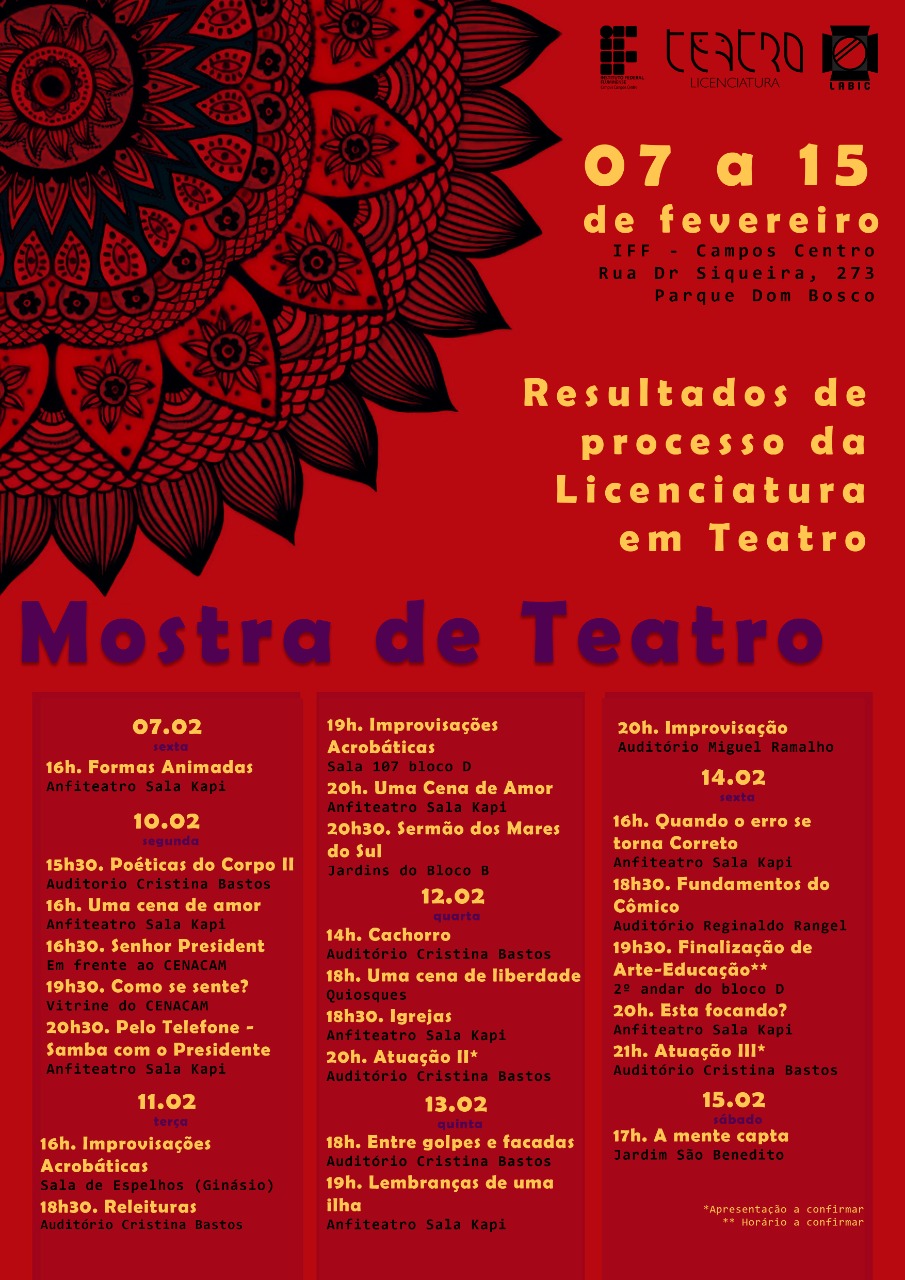 Atividades desenvolvidas no campus por estudantes da Licenciatura em Teatro.