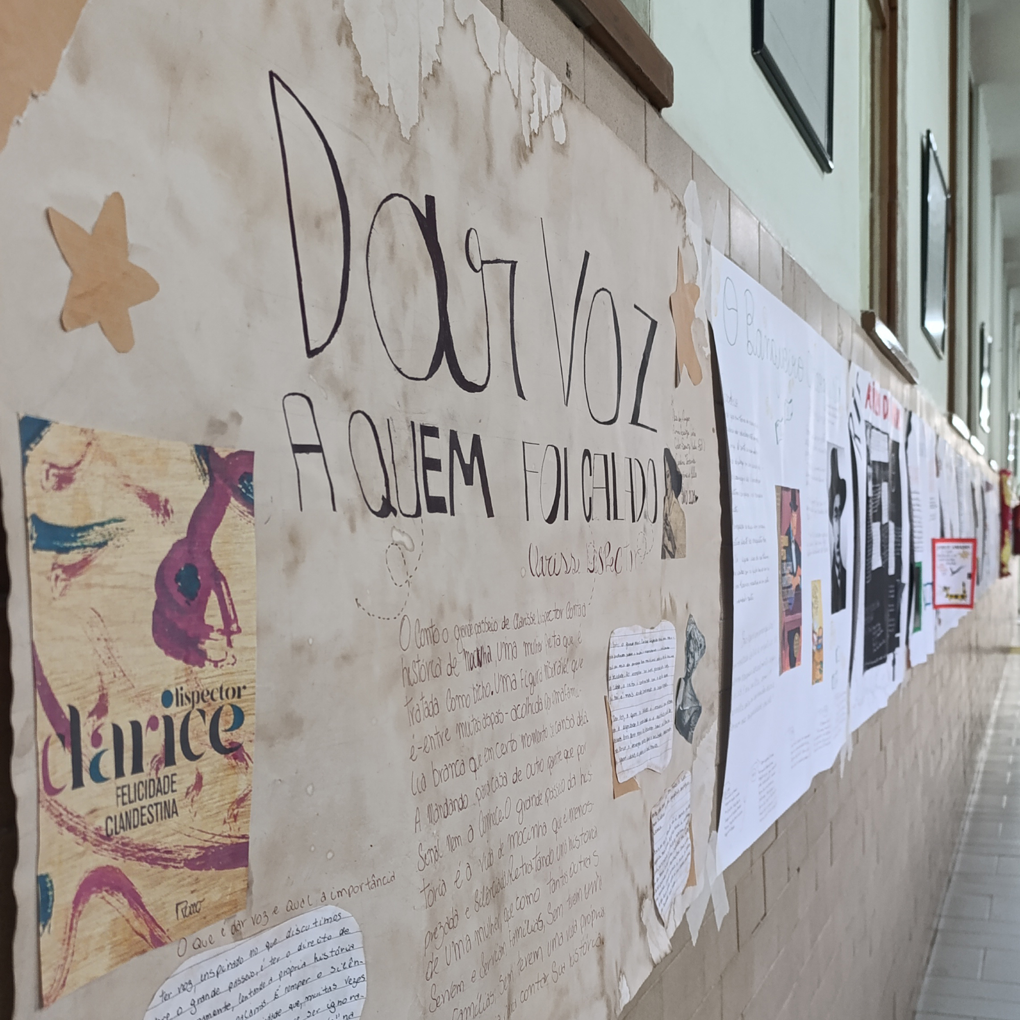 Os cartazes produzidos pelos estudantes estão na rampa do bloco A.Foto: Vitor Carletti | Ascom Centro