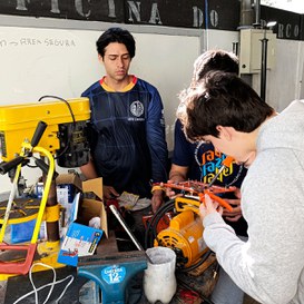 Na quarta-feira, 11 de junho, estudantes do 6º período do Curso de Bacharelado em Engenharia Elétrica, oferecido gratuitamente no IFF Campus Campos Centro, estavam trabalhando na montagem dos circuitos principal e secundário, que são instalados em uma caixa retangular, onde também ficam as baterias. Os circuitos formam um sistema de monitoramento de segurança. "A gente monitora a tensão e a corrente da bateria o tempo todo, para ter um desempenho melhor na prova", explica Rodrigo Pessanha. Seu colega de sala, Thiago Campos, complementa com o detalhe de que o barco tem equipamentos auxiliares que funcionam com 12 volts e uma bateria principal, de 48 volts. Ao mesmo tempo, o circuito alimenta fitas de LED que ajudam a iluminar o painel e a embarcação, algo importante, vez que pode ser necessária uma manutenção pós-prova, à noite.