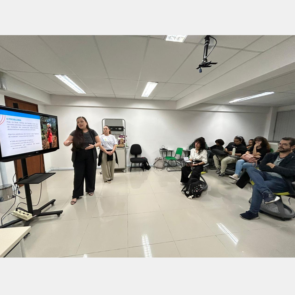 O projeto Reutiliza + foi apresentado a estudantes do Curso Design Gráfico do IFF Campos Centro. A integrante Ana Paula Lopes (de pé) também participou da videoconferência que premiou a iniciativa.Foto: Divulgação/ Reutiliza+