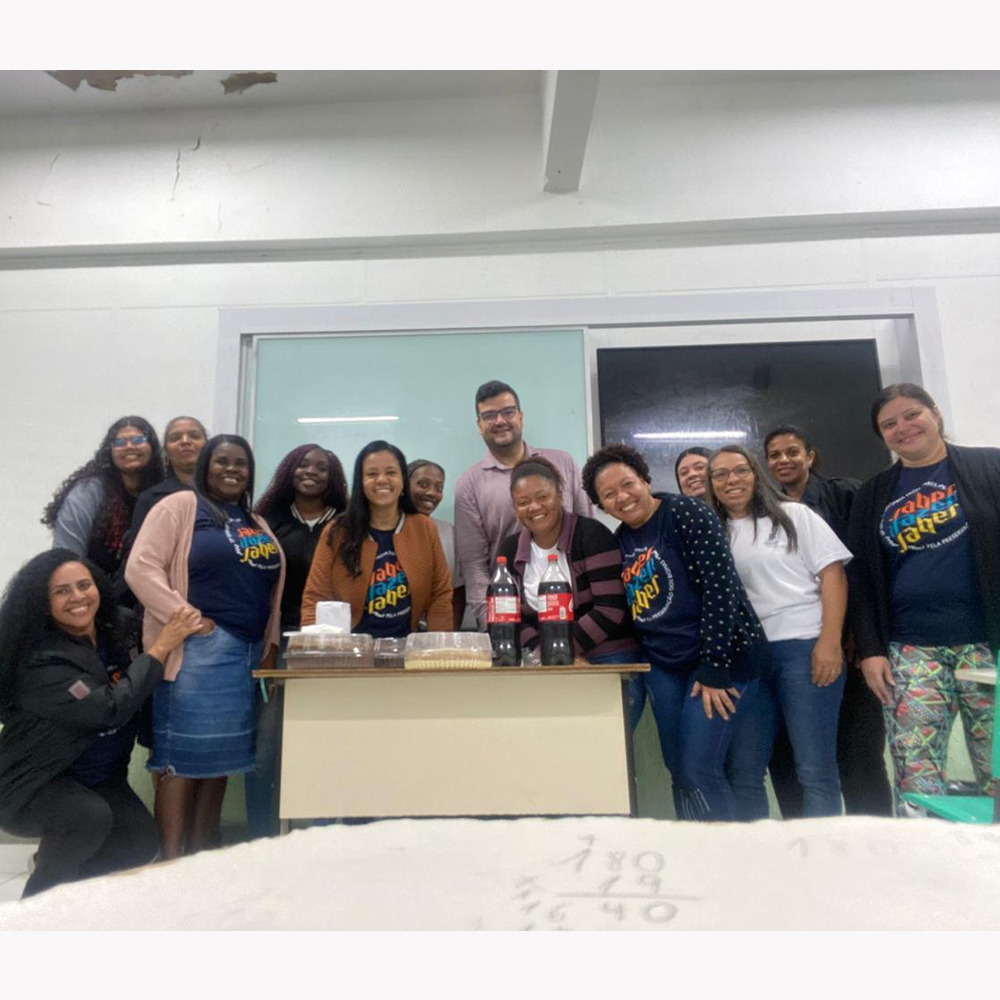 O professor Allison dos Santos e suas alunas do Curso de Assistente Administrativo (Foto: Divulgação).