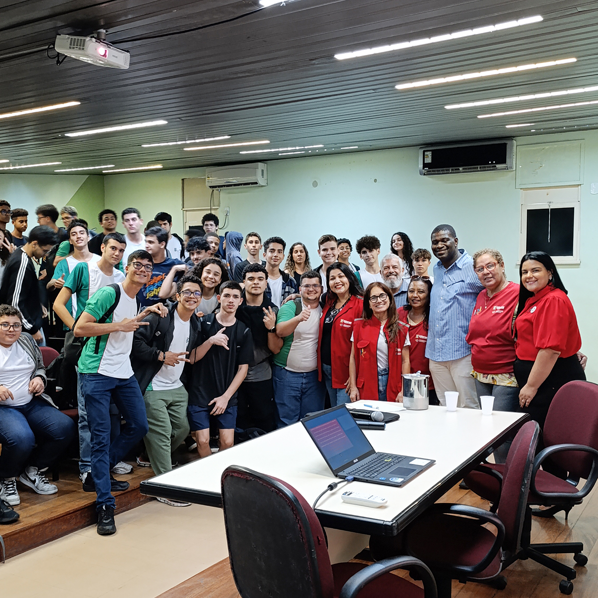 Estudantes do IFF Campos Centro, integrantes do PETI Campos e o professor Roberto Silva (camisa azul) Foto: Nicoly Pacheco/Ascom.