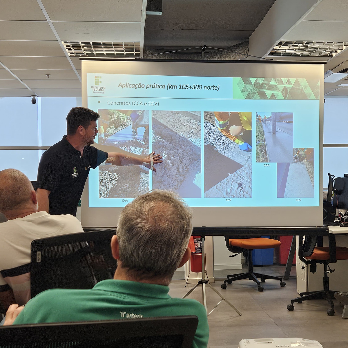 O professor pesquisador André Destefani durante a apresentação na Arteris de resultados da pesquisa (Foto: Divulgação).