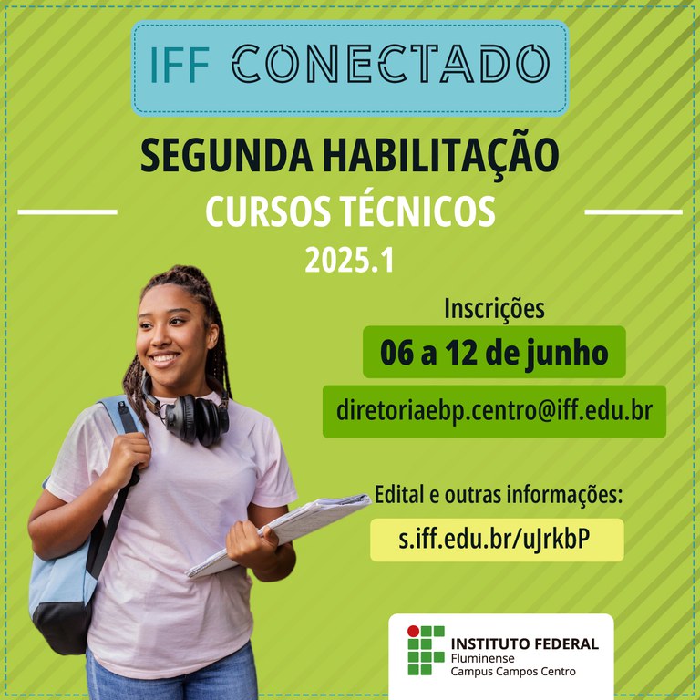 O resultado final será divulgado no dia 18 de junho, a partir das 19h, no Portal Seleções do IFF e na Diretoria de Educação Básica e Profissional do IFF Campos Centro, localizada no bloco A do campus.