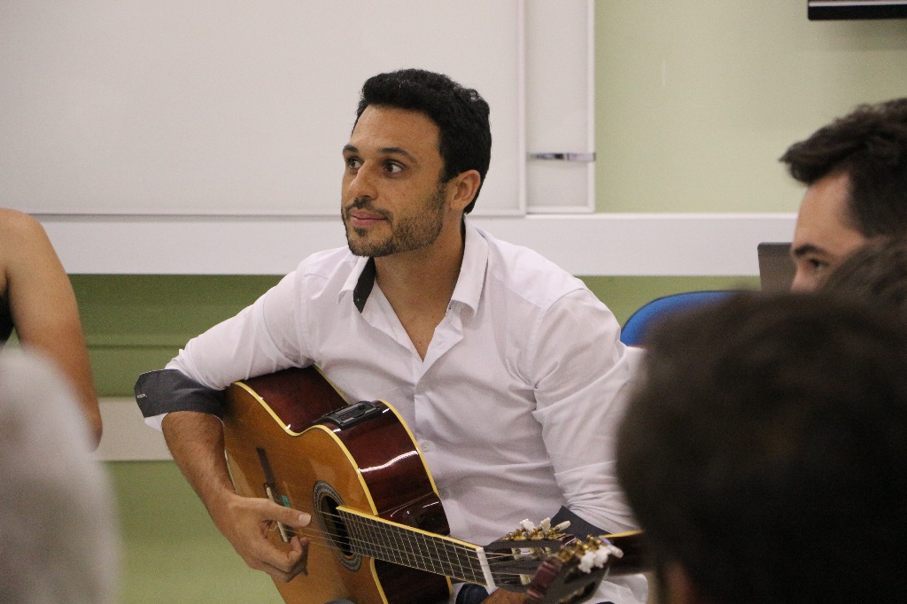Professor Gustavo França ministrando oficina sobre educação musical.