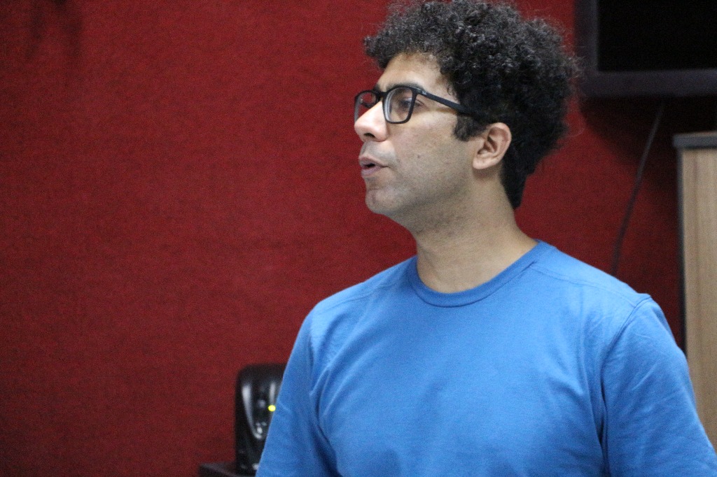 Professor André Mendes ministrando a oficina "Percussão: rítmica brasileira".