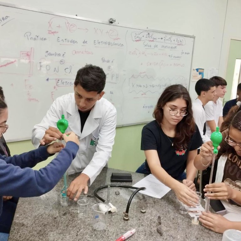 Uma manhã de muito aprendizado e interação para estudantes do Colégio Estadual Chequer Jorge, que estiveram nesta terça-feira, 29 de abril, nos laboratórios do Instituto Federal Fluminense (IFF) Campus Itaperuna para participarem de uma série de série de demonstrações de experimentos eletroquímicos.