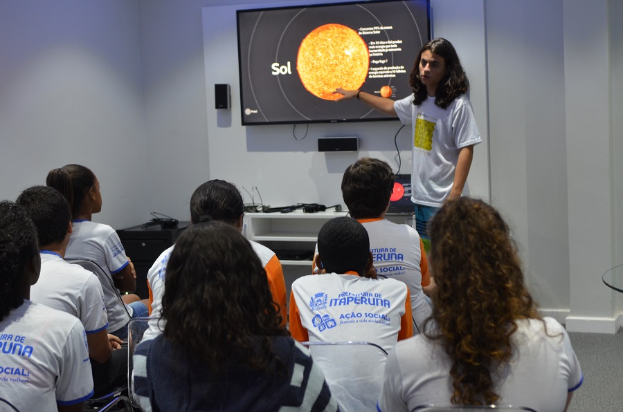 Alunos da rede municipal de Itaperuna participam de aula na Tecnoteca, sobre o Sistema Solar
