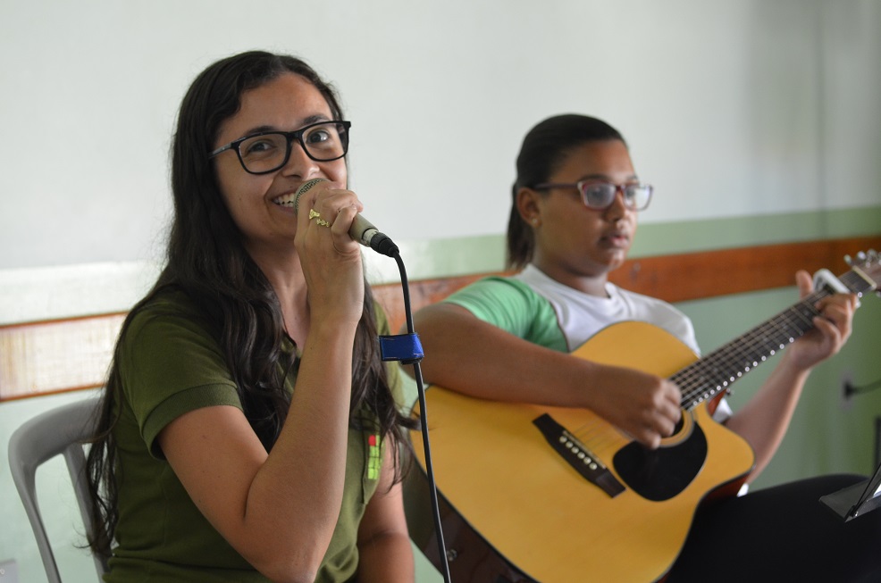 Integrantes do Arte no Campus fazem apresentação musical para celebrar a chegada das festas de fim de ano