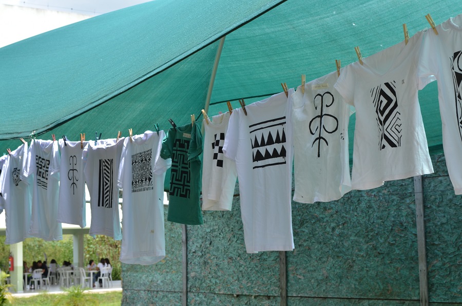 Exposição das camisas feitas pelos alunos do segundo ano dos cursos Integrados do IFFluminense com temática indígena