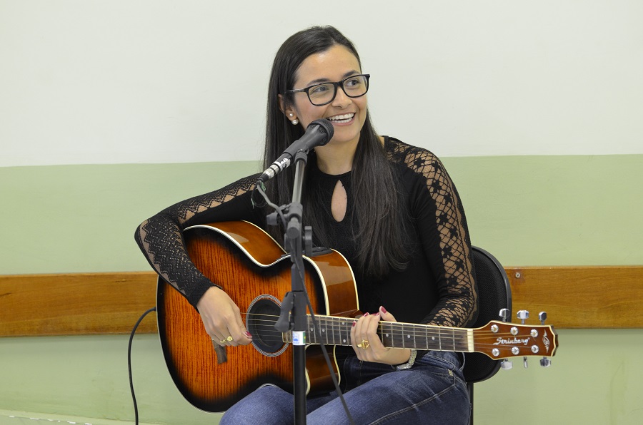 A professora Fabiana Barros fez uma apresentação musical durante a cerimônia