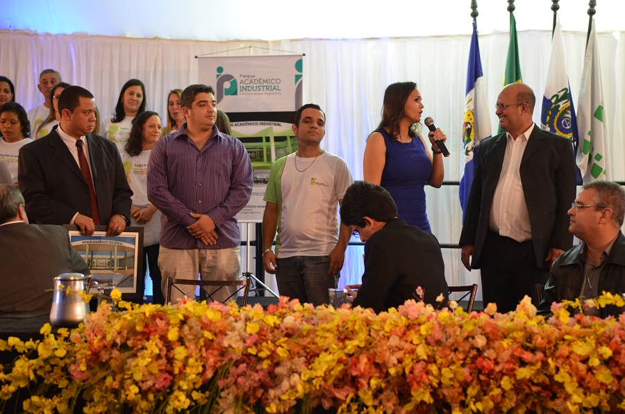 Homenagem aos responsáveis pela obra, durante a inauguração do Parque Acadêmico Industrial