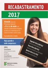 No caso dos alunos dos Cursos Concomitantes de Eletrotécnica e Mecânica, além do Proeja e do superior em Sistemas de Informação, o recadastramento acontecerá na Coordenação de Turno, no hall do Bloco B, das 17h às 22h, respeitando o cronograma: