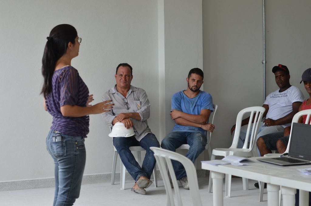 Palestra de conscientização sobre os riscos causados pelo Aedes aegypti para funcionários terceirizados em obra no campus Itaperuna