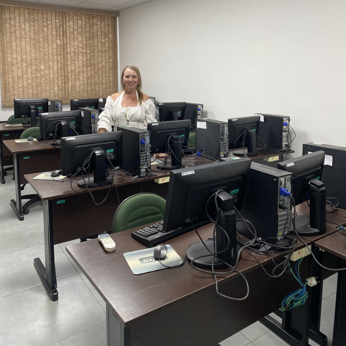 Aline Pires, diretora do Centro de Referência, no Laboratório de Informática (Foto: Divulgação IFF).