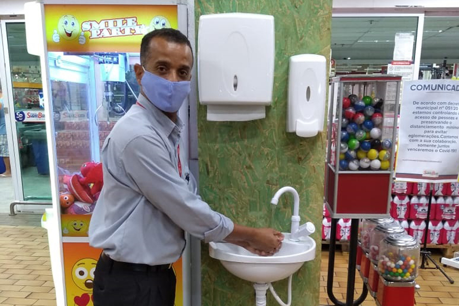 Pia móvel sendo utilizada em supermercado, em Campos dos Goytacazes-RJ.
