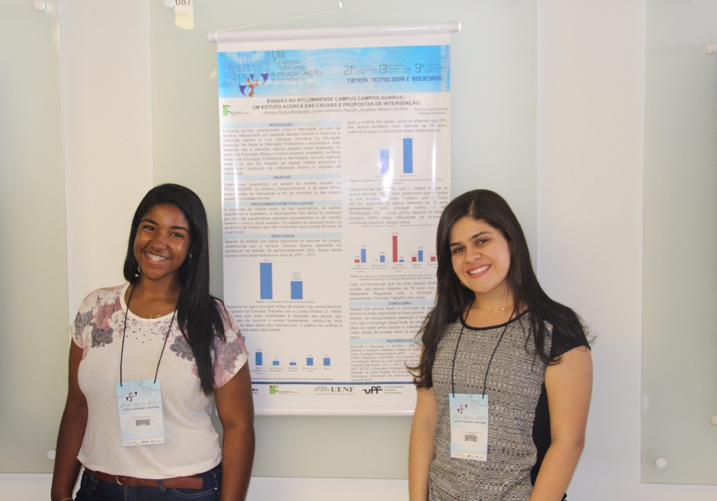 Alunas Lana Peixoto (esquerda) e Kamila Rocha (direita) apresentando seu trabalho