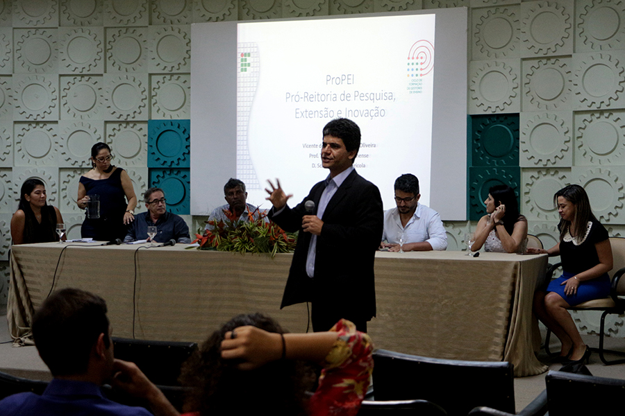 O reitor Jefferson Manhães durante o Painel IFFluminense "Convite a um projeto coletivo"