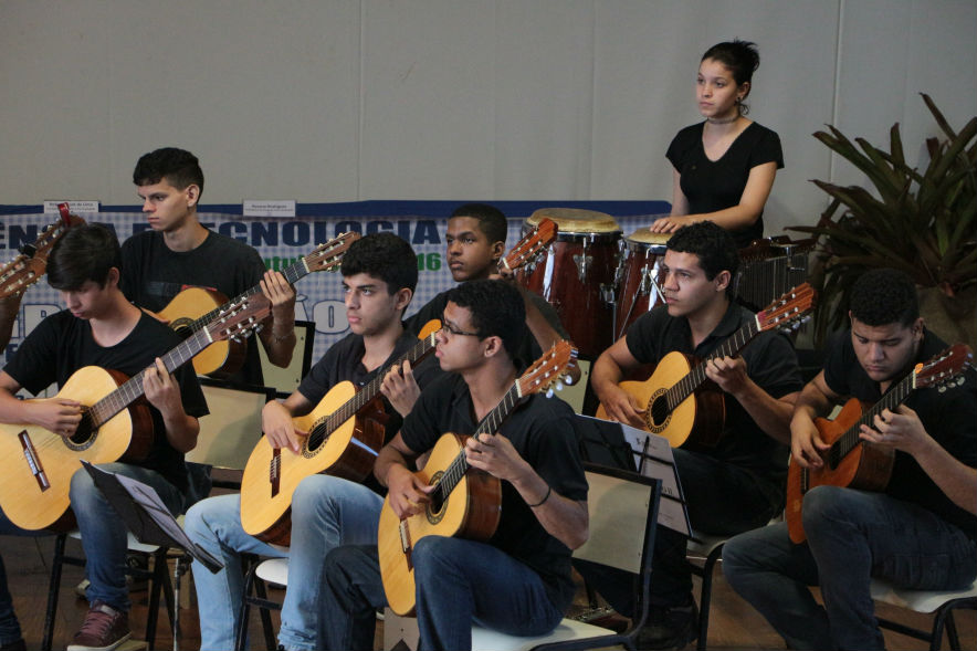 O evento foi aberto pela Orquestra de Violões do IFFluminense.